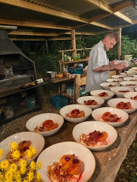 Stand out dish 4 – ash baked sweet potato, wildflower vinegar & wild lemon labneh at the Fodder Lughnasadh feast